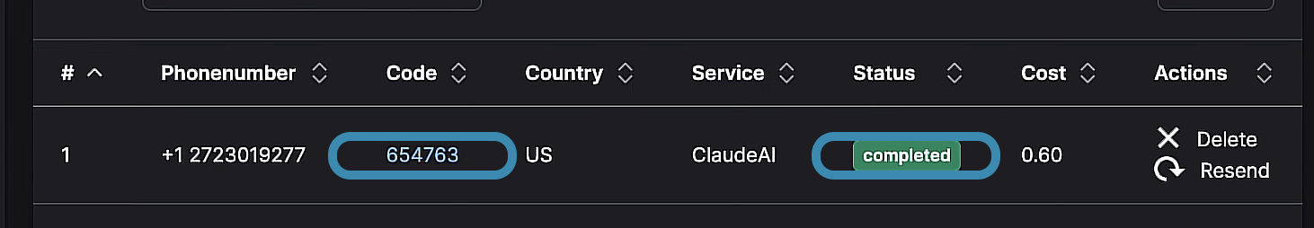 Sau khi nhấn vào nút Send SMS, hệ thống sẽ yêu cầu bạn nhập mã xác thực SMS. Quay lại SMSPool, trạng thái đơn hàng sẽ hiển thị là Completed, và dưới mục Code. Mã xác thực SMS của ClaudeAI sẽ được hiển thị.