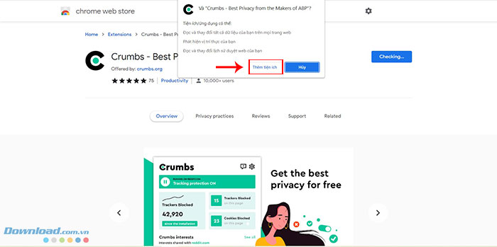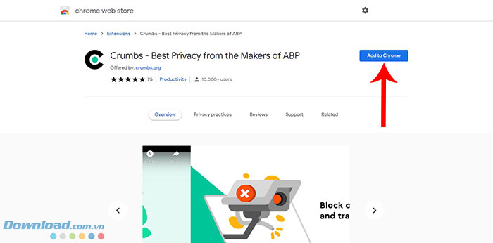 Bước 1: Truy cập Crumbs trên Cửa hàng Chrome trực tuyến.