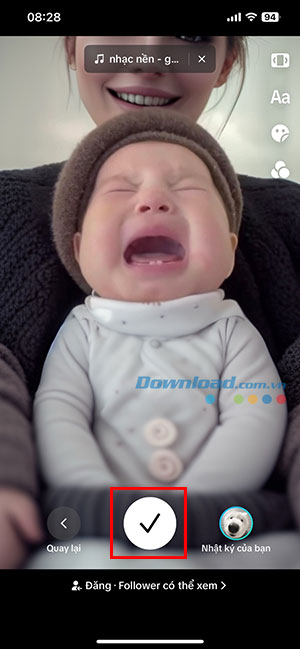 Bước 4: Nhấn biểu tượng dấu tích để tải lên video để chia sẻ tới mọi người.