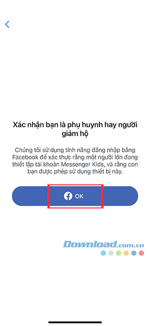 Bước 2: Nhấn vào OK để xác nhận rằng mình là cha mẹ hoặc người giám hộ.
