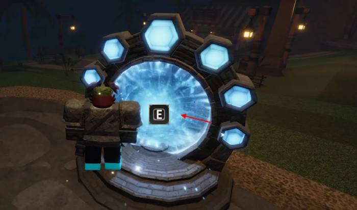 Sau khi hoàn thành nhiệm vụ, hãy đến gặp NPC Wizard ở cuối đảo trong một căn nhà. Đây cũng chính là NPC giúp mọi người đổi chủng tộc trong The Forge. Con đường dẫn đến Wizard nằm bên tay trái, ngay trước khi đi vào hang động. Vậy là xong, mọi người đã sở hữu Portal Tool và có thể bắt đầu dùng nó để di chuyển tới các địa điểm khác nhau trong The Forge map.