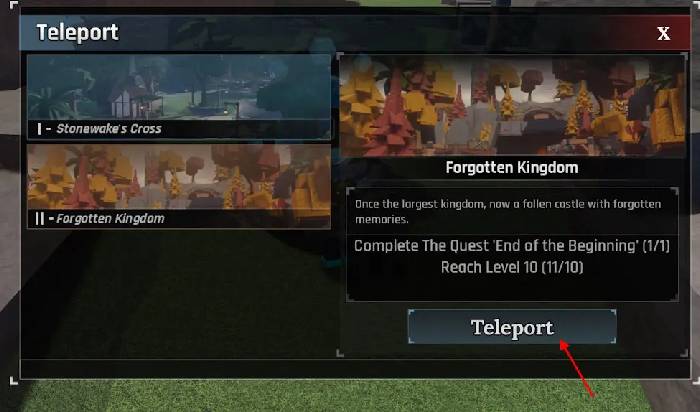 Tuy nhiên, trước khi có thể dùng Portal Tool để đến Forgotten Kingdom, người chơi cần đạt cấp 10. Việc này khá dễ nếu bạn sử dụng mã code The Forge để nhận quà miễn phí lúc đầu game.