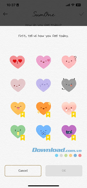 Mọi người cũng có thể cho người kia biết về tâm trạng của mình ngày hôm nay thông qua SumOne mood, những hình trái tim thể hiện cảm xúc.