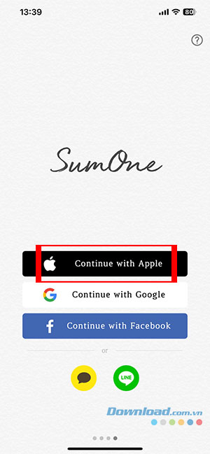 Bước 1: Tải xuống ứng dụng SumOne và tiến hành đăng nhập bằng Apple ID, Google hoặc Facebook.
