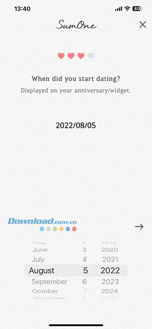 Bước 3: Lựa chọn ngày bắt đầu hẹn hò của mình và người yêu.