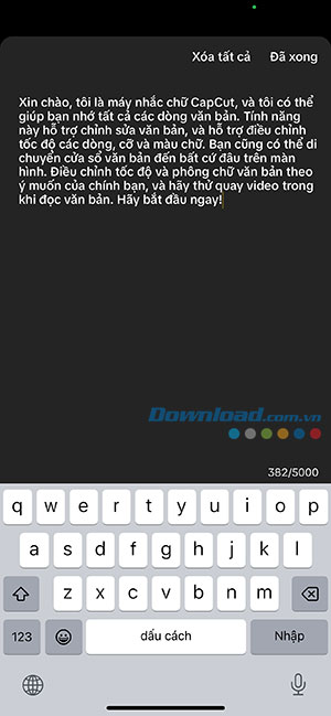 Tiếp theo, nhấn nút Xóa tất cả để xóa nội dung giới thiệu rồi nhập nội dung cần nhắc. Nếu đã viết kịch bản ở nơi khác, mọi người có thể sao chép và dán nó vào máy nhắc chữ, chỉ cần đảm bảo rằng nó nằm trong giới hạn 5000 ký tự. Sau khi nhập xong, hãy nhấn nút Đã xong.