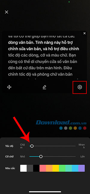 Mọi người có thể điều chỉnh tốc độ, kích thước phông chữ và màu sắc của máy nhắc chữ. Hãy tập đọc to chữ và tùy chỉnh cài đặt để đảm bảo mình có thể đọc thoải mái và với tốc độ vừa phải. Sau khi hoàn tất, hãy nhấn lại vào biểu tượng cài đặt.