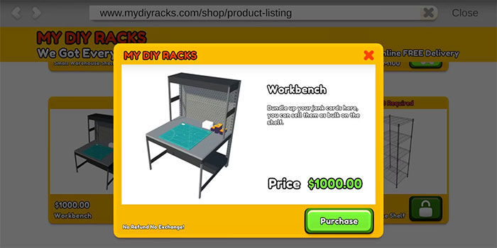 Khi đạt đến đúng cấp độ, hãy bật điện thoại và vào menu My DIY. Cuộn xuống và mọi người sẽ thấy Workbench được niêm yết với giá 1000 đô la. Đây chắc chắn là một khoản đầu tư lớn, nhưng là mức giá khá nhỏ so với những gì nó mang lại. Sau khi đặt hàng, Workbench sẽ được giao trong một hộp đến cửa hàng. Hãy nhặt nó lên, đặt vào một góc cửa hàng và nó đã sẵn sàng để sử dụng.