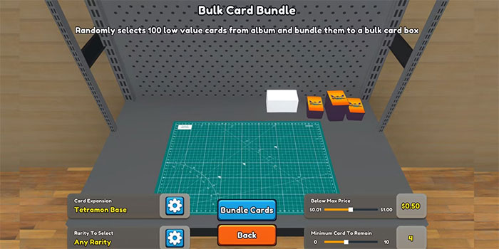 Sau khi đã đặt các thông số đó theo ý thích của mình, hãy nhấp vào Bundle Cards để tạo gói thẻ tùy chỉnh của mình và hoàn tất quá trình chế tạo gói thẻ. Bây giờ, người chơi sẽ có một gói thẻ để bày bán trên kệ và đặt giá theo ý thích của mình.