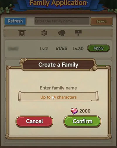 Mọi người sẽ tìm thấy nút Create a Family trên tab Family Application. Người chơi sẽ phải chi 2000 kim cương để tạo ra một liên minh của riêng mình để có quyền làm chủ. Tuy nhiên, mọi người không nên tạo một liên minh sớm trong trò chơi. Có khá nhiều việc sẽ phải làm với tư cách là người lãnh đạo, vì vậy tốt hơn hết game thủ nên tạo bang hội sau khi mở khóa tất cả các cơ chế và có thứ hạng ổn định trong các sự kiện.