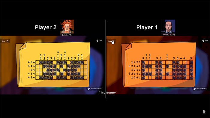 Nhìn vào tờ giấy gấp ở trên cùng bên trái, hướng dẫn hoàn thành phần này nằm ở mặt sau của tờ giấy. Trước khi giải quyết hoàn toàn, người chơi chỉ cần nhấp chuột liên tục để điền và xóa bất kỳ ô vuông nào nhiều lần. Bây giờ hãy điền vào các câu đố như sau (Old Dog ở bên trái, Ally ở bên phải):