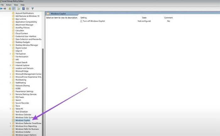 Bước 2: Ở menu bên trái, đi theo đường dẫn sau: User Configuration > Administrative Templates > Windows Components > Windows Copilot.