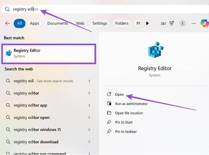 Bước 1: Mở Registry Editor bằng cách gõ Registry Editor vào thanh tìm kiếm.