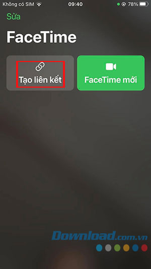 Mở FaceTime trên iPhone hoặc iPad, sau đó chọn tùy chọn Tạo liên kết ở đầu giao diện. Thực hiện thao tác này để mở Trang chia sẻ.