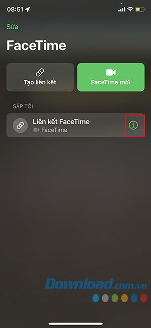 Để chia sẻ liên kết FaceTime, hãy chạm vào nút i bên cạnh cuộc gọi được liệt kê ở mục Sắp tới, sau đó chọn Chia sẻ liên kết. Từ Trang chia sẻ, chọn bất kỳ ai để gửi liên kết hoặc chọn một ứng dụng như Mail hoặc WhatsApp để chia sẻ liên kết thông qua đó.