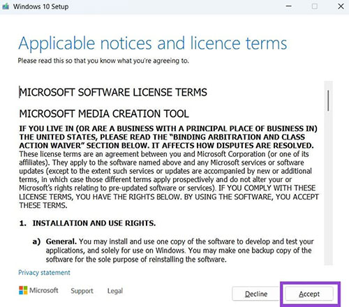 Bước 2: Mở công cụ Media Creation Tool vừa tải và chấp nhận các điều khoản.