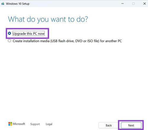 Bước 3: Chọn Upgrade this PC now rồi nhấn Next.