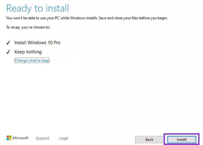Bước 6: Chờ công cụ kiểm tra bản cập nhật rồi nhấn Install ở màn hình cuối cùng để hoàn tất. Máy tính có thể sẽ khởi động lại nhiều lần và khi hoạt động trở lại PC sẽ có hệ điều hành Windows 10.