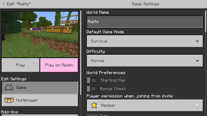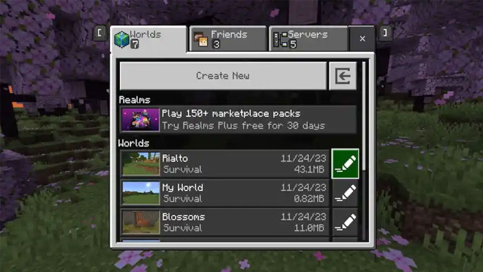 Để bật tọa độ trong thế giới đã có trước khi vào chơi, mọi người cần nhấp vào biểu tượng cây bút chì ở bên phải tên thế giới. Thao tác này sẽ điều hướng đến màn hình chỉnh sửa thế giới.