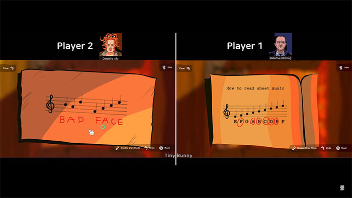 Cả hai người chơi nhìn vào bản nhạc ở phía trên bên phải. Old Dog có hướng dẫn cho mọi người cách đọc nhạc và Ally có một chuỗi các nốt nhạc. Hai người chơi có thể tìm ra rằng bản nhạc có nội dung BAD FACE. Old Dog có một loạt huy hiệu cảnh sát ở bên trái và huy hiệu có chữ BAD FACE cũng có số 8 cùng với một viên kim cương.