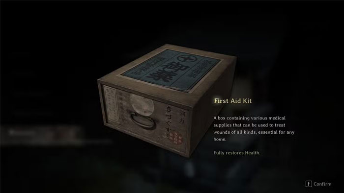 Đầu Silent Hill f, người sẽ tìm thấy Red Capsules giúp hồi phục một chút máu đồng thời tăng cường độ tỉnh táo tối đa hiện tại của bạn. Băng gạc và Yokan mang lại khả năng hồi phục mạnh mẽ hơn nhiều, trong đó Yokan còn có thể dùng để cúng tại đền Hokora.