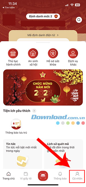 Bước 2: Trên trang chủ của ứng dụng, nhấn vào tab Cá nhân ở góc dưới cùng bên phải.