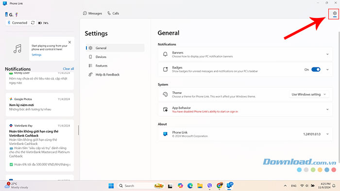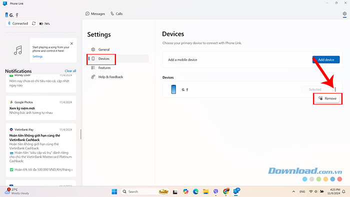 Để xóa thiết bị hay ngắt kết nối giữa điện thoại với máy tính Windows trong Phone Link, hãy làm theo các bước dưới đây: