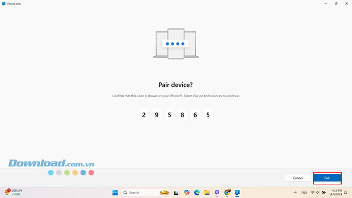 Bước 6: Bây giờ hãy nhập mã pin trong khi được thông báo Pair device? và nhấn Pair.