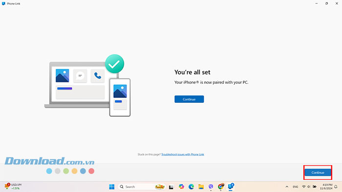 Bước 8: Bây giờ hãy mở lại Phone Link trên PC và nhấn Continue.