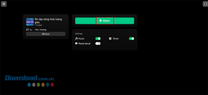 Bước 4: Nhấn vào bài tập sau khi chọn được nội dung cần tìm, sau đó chọn Start để bắt đầu làm.