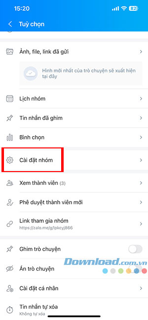 Bước 3: Nhấn vào Cài đặt nhóm.