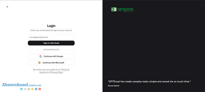 Mở trình duyệt web thường dùng (ví dụ: Chrome, Firefox, Safari). Nhập địa chỉ trang GPTExcel vào thanh địa chỉ và đăng nhập bằng tài khoản Google hoặc Microsoft.