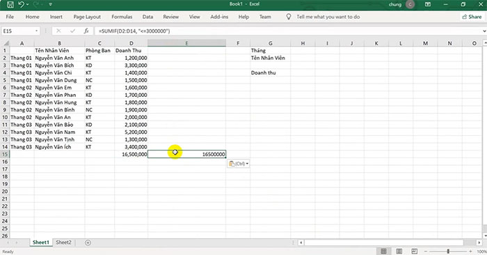 Sau khi dán công thức, nhấn Enter để thực thi. Kết quả sẽ hiển thị trong ô, cung cấp cho mọi người giá trị hoặc kết quả dựa trên mô tả công thức đã nhập.