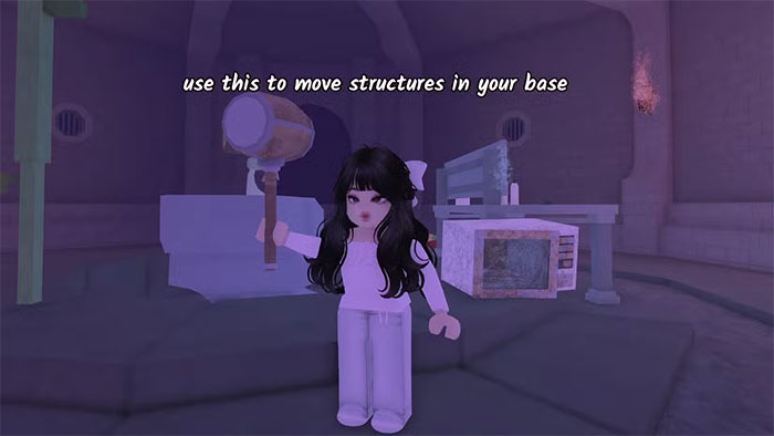 Chiếc búa, thoạt nhìn giống một công cụ xây dựng thông thường, nhưng thực ra lại có công dụng khác trong trải nghiệm Roblox này. Thay vì tạo ra đồ vật, nó chủ yếu được dùng để di chuyển các vật dụng trong căn cứ. Công cụ này rất cần thiết nếu game thủ muốn căn cứ của mình gọn gàng vì nó giúp sắp xếp lại lều, giường hoặc bẫy vốn thường bị cố định một chỗ. Khi dựng tường phòng thủ bằng gỗ, búa còn giúp chỉnh lại những khúc gỗ đặt sai vị trí để che kín khoảng trống.