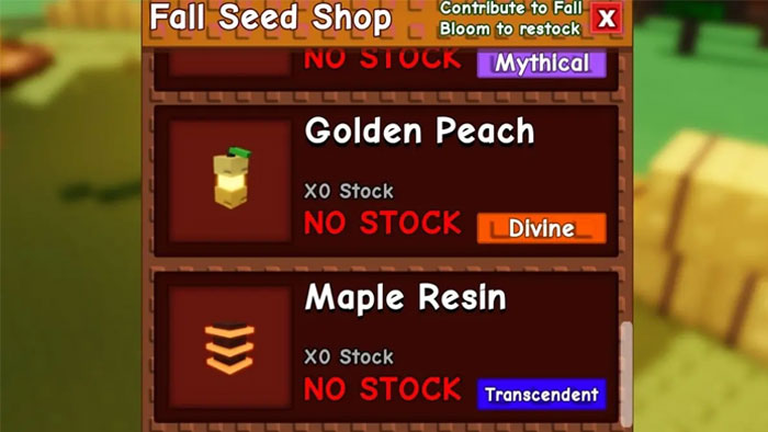 Lưu ý: Các cửa hàng sự kiện Fall hoạt động khác biệt. Người chơi chỉ có thể mở khóa vật phẩm khi đóng góp đúng loại cây cho NPC Harvester Spirit Tree. Những loại thường được yêu cầu gồm: Woody, Tropical, Fruit, Vegetable, Flower.