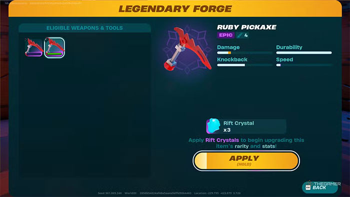 Rift Shard có thể được sử dụng để chế tạo cả Battle Bus Station để mở khóa khả năng di chuyển nhanh hơn và Legendary Forge để nâng cấp công cụ thành phiên bản Legendary g. Cùng với các mảnh vỡ, đây là công thức chế tạo cho cả 2 công trình này:
