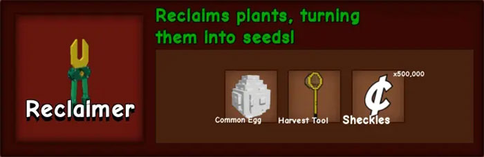 Reclaimer là vật phẩm hoàn hảo cho những người chơi thích quản lý diện tích vườn một cách thông minh. Có hai cách để bạn sở hữu vật phẩm này: