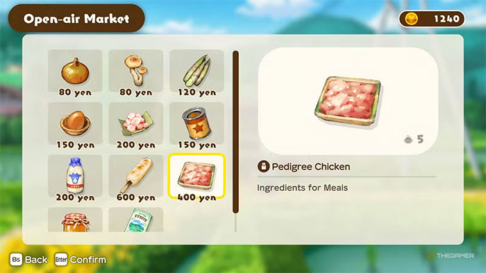 Một vài thử thách nấu ăn này là bắt buộc phải hoàn thành, vì vậy game thủ nên chuẩn bị sẵn nguyên liệu trong kho. Ban đầu mọi người chỉ có một vài lựa chọn, nhưng theo thời gian nhưng sẽ mở khóa thêm nhiều nguyên liệu mới. Nếu không đủ tiền Yên, mọi người vẫn có thể trao đổi chúng qua bảng thông báo ở Unbent Village.