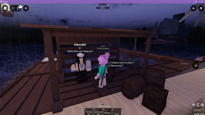 Sau khi hoàn thành, đã đến lúc đến thăm NPC Shipwright, cũng ở ngay cạnh bến tàu. Người chơi thậm chí sẽ không thể nói chuyện với NPC này cho đến khi hoàn thành hướng dẫn, vì vậy đừng vội vã đến đó ngay.