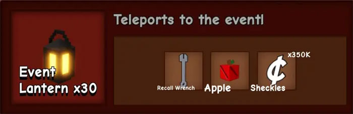 Event Lantern cho phép người chơi di chuyển đến trung tâm sự kiện ở giữa khu vực chơi mà không cần phải đi bộ. Cách sử dụng vật phẩm này rất đơn giản, tương tự như Recall Wrench. Mọi người chỉ cần trang bị vật phẩm này vào tay và nhấp chuột trái.