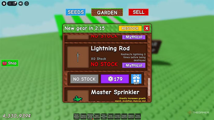 Để có được cột thu lôi trong Grow A Garden, người chơi cần đến Gear Shop - nơi chuyên bán các công cụ làm vườn giúp tăng kích thước cây trồng và tăng khả năng nhận đột biến có lợi. Hãy đến cửa hàng này và tương tác với người bán để mở tab mua sắm hiển thị tất cả các công cụ có sẵn.