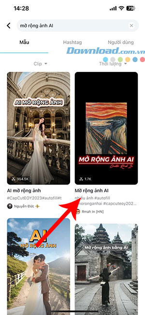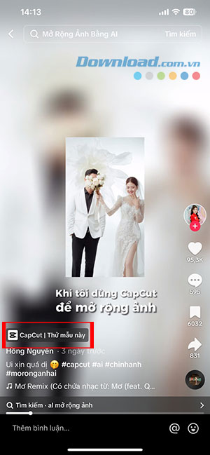 Bước 1: Nếu thấy một video trên TikTok đã sử dụng mẫu AI mở rộng ảnh, mọi người chỉ cần chạm vào CapCut | Thử mẫu này nằm phía trên tên người dùng.