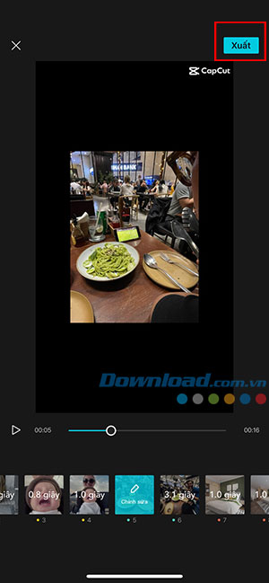 Bước 4: Xem qua các hình ảnh mở rộng bằng AI mà CapCut thực hiện. Nếu đã ưng ý với thành quả, hãy nhấn nút Xuất để đăng tải video lên TikTok hoặc tải về thư viện ảnh của thiết bị.