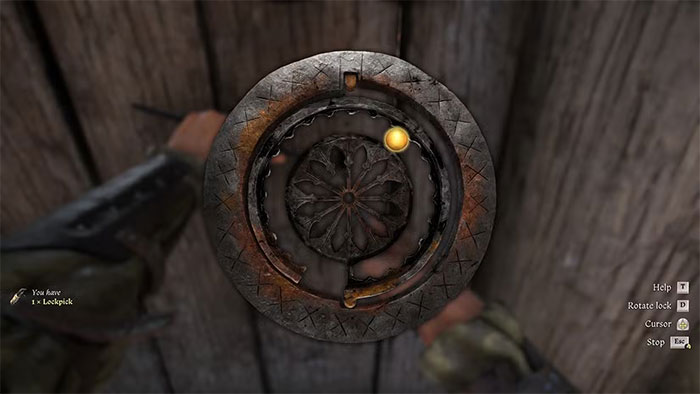 Để sử dụng Lockpick, hãy đến gần bất kỳ cánh cửa hoặc rương bị khóa nào và tương tác với nó. Trò chơi nhỏ mở khóa bao gồm các bước sau: