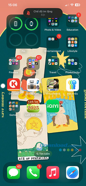 Không làm phiền sẽ tạm thời tắt tiếng tất cả cuộc gọi, tin nhắn và thông báo. Để kích hoạt, vuốt xuống từ góc trên bên phải màn hình để mở Trung tâm điều khiển, sau đó nhấn vào biểu tượng hình trăng khuyết.
