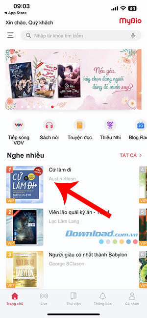 Bước 2: Sau khi hoàn tất tải xuống, mở ứng dụng và nhấn vào tựa sách mọi người muốn nghe.