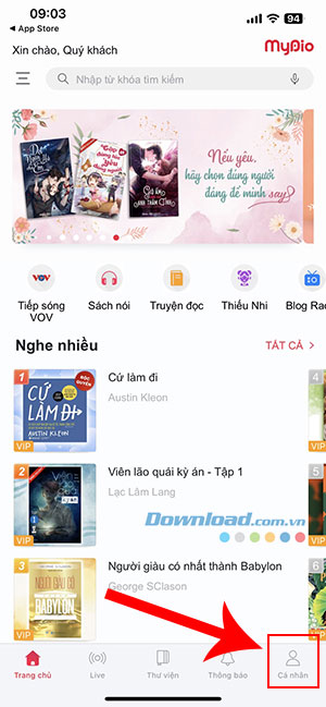 Bước 1: Để tạo tài khoản MyDio, nhấn vào tab Cá nhân.
