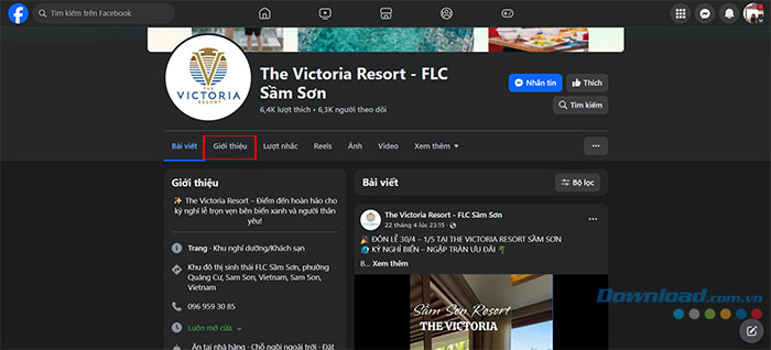 Bước 1: Mở một fanpage trên Facebook mà mọi người muốn kiểm tra tính minh bạch, sau đó, nhấn vào Giới thiệu.