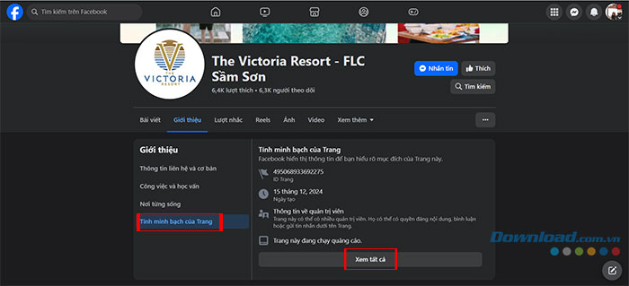 Bước 2: Tại phần Giới thiệu, chọn Tính minh bạch của Trang và ấn vào Xem tất cả.