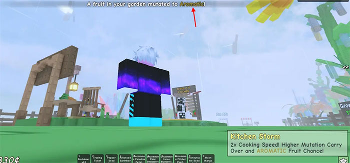 Thời điểm tốt nhất để nhận đột biến Aromatic trên cây trồng là trong sự kiện Kitchen Storm. Để kích hoạt sự kiện này, người chơi cần làm theo các công thức nấu ăn trong Grow a Garden để chế biến món ăn. Sau đó, đem những món ăn này cho NPC Chris P để nạp đầy thanh chỉ số phía trên đầu chú heo.